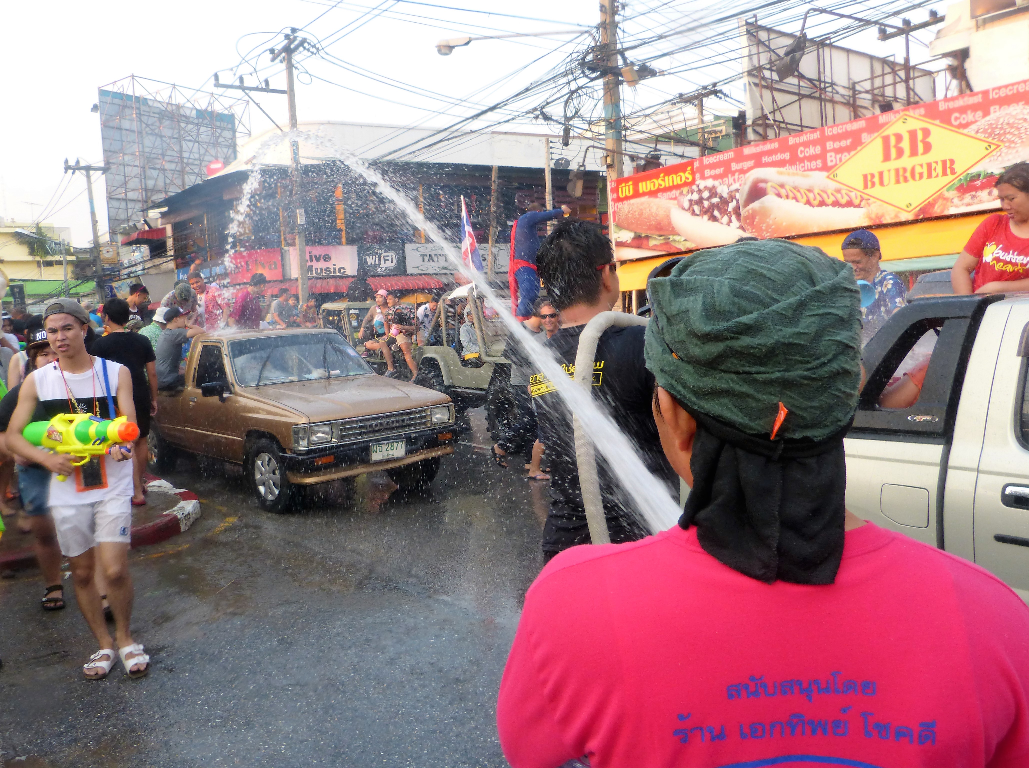 Mais tous les ans, pour la fête de la mer, les pêcheurs nous emmènent faire des tours en mer et… Ils sortent de gros tuyaux d’eau du même style pour arroser tout le monde !!!